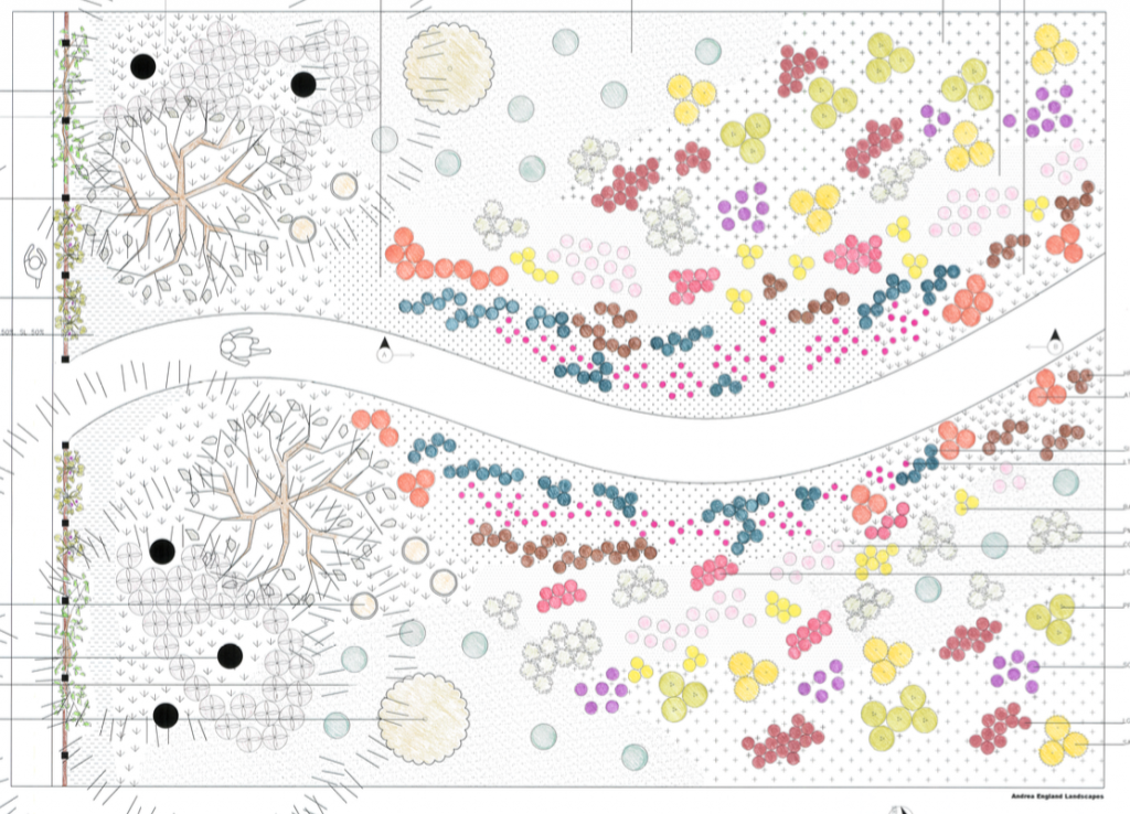 What interested me the most about this project were the design goals for diversity of plant material and support for wildlife. I appreciated not being limited to choosing just a few plants, I was able to use lots of grasses and wildflowers. My plant list originally had about a dozen more wildflowers but I cut them because I wanted to be able to repeat the others enough so that patterns of color and structure would be easier to read. I found the most challenging aspect to be finding drawing files for elevations of American praire/meadow plants. I draw on the computer and it was hard to find elevation symbols for these plants. I actually drew the Carphephorus corymbosus and Liatris symbols myself because I couldn’t find anything that resembled those.