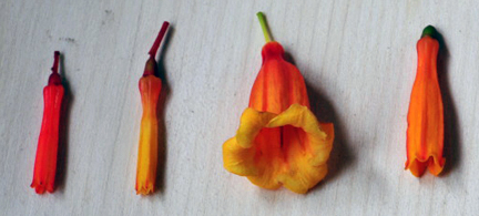 To complicate things even further, Hamelia cuprea hybridizes with Hamelia patens, and the hybrids produce flowers that are intermediate between the two species, resembling Hamelia cuprea in color but are much narrower, measuring about 1-1/4″ long and 1/4″ wide.
