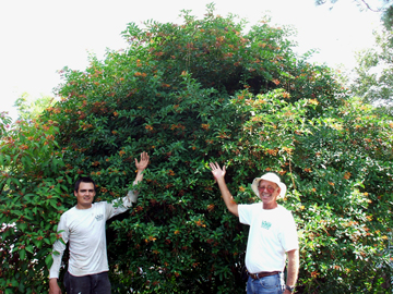 There's no such thing as "Dwarf Firebush," as shown here by FANN members Oliver Herrera (left) and John Sibley (right, FANN president and owner of All Native Garden Center), standing next to a "Dwarf" Firebush. A thorough critique of the genus in Florida, by Florida firebush expert Roger L. Hammer